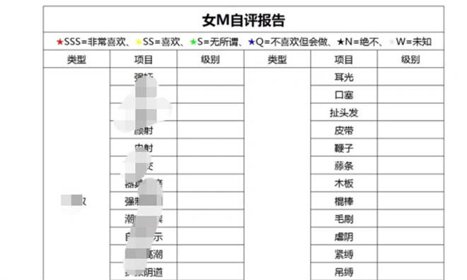 女M自评报告是字母圈新手的“入门指南”,实质上是一份详尽的问卷,旨在帮助女M(或潜在女M)明确自己的喜好、界限和过往经历。